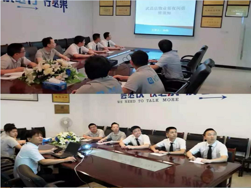 物業(yè)保衛(wèi)部綜合維修主管湯曉,召集物業(yè)保衛(wèi)部全體員工開展夜間值班管理流程培訓(xùn)。本次培訓(xùn)從夜間用電安全、卸貨區(qū)進(jìn)出門管理及監(jiān)控室注意事項(xiàng)等三個(gè)方面展開,全方位對(duì)武昌店夜間的安全工作進(jìn)行了培訓(xùn)指導(dǎo)。卸貨區(qū)要按照出門條嚴(yán)格清點(diǎn)出門貨物及數(shù)量,防止夾帶;監(jiān)控室夜間盯守各重要出口,發(fā)現(xiàn)異常及時(shí)通報(bào)值班人員處理;夜間巡場(chǎng)必須按照裝修施工管理規(guī)定嚴(yán)格檢查裝修商戶的用電安全、裝修手續(xù)及抽煙情況,對(duì)有違規(guī)情況的商戶斷電清場(chǎng),對(duì)違規(guī)情況嚴(yán)重的按管理?xiàng)l例通知業(yè)務(wù)部進(jìn)行處罰。各部門要互相配合處理問題,將“安全無小事”牢記心中!