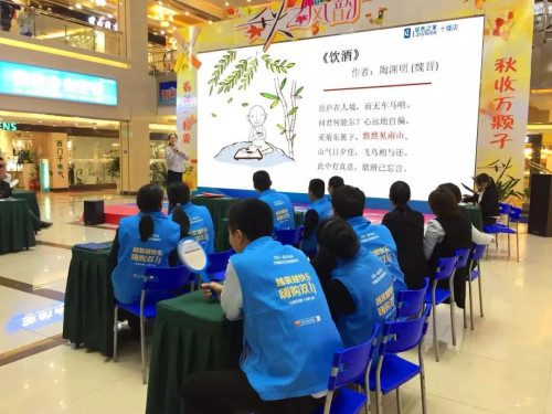 選手們還可求助場(chǎng)外觀眾幫忙答題,這位下課慕名而來(lái)的小朋友為我們誦讀蘇軾名作,獲得大家一致贊賞。